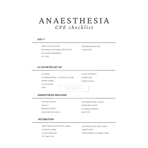 A clear, detailed and structured guide to prepare for the anaesthesia section of the Clinical Proficiency Exam of the ECFVG. You will find step-by-step instructions, pictures, tips and a printable checklist that will keep you organized and study for the CPE.